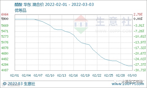 今日醋酸价格行情暂稳运行,华东地区市场均价较昨日持平,市场行情止跌企稳。