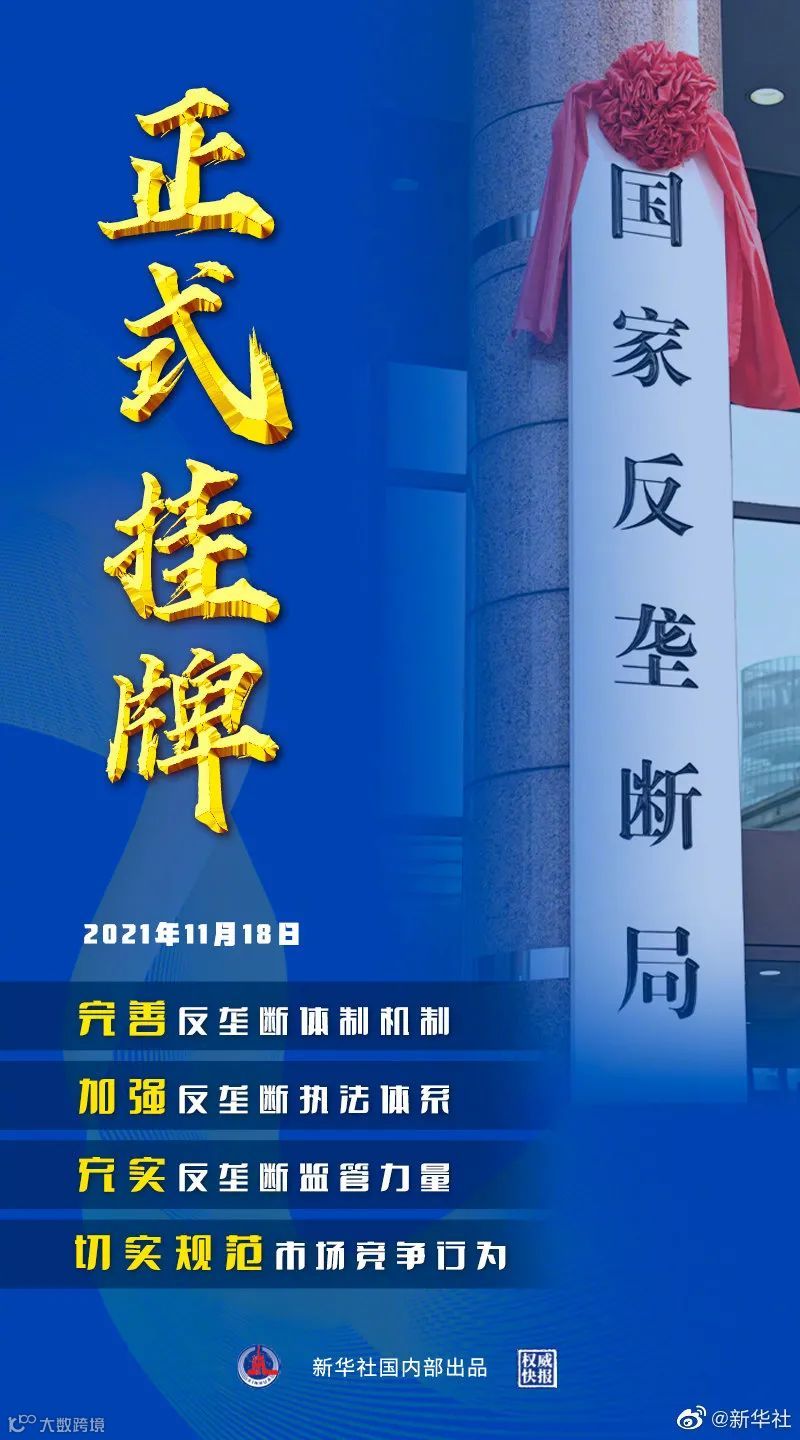 2021年11月18日,在国家市场监督管理总局办公大楼,国家反垄断局正式挂牌。