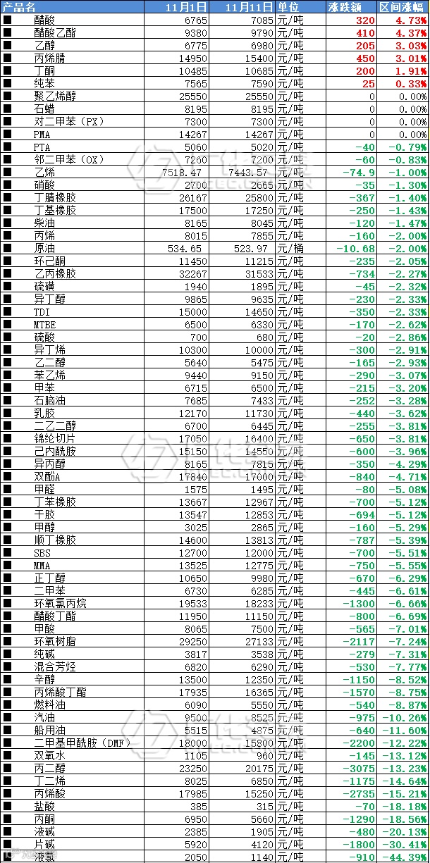 在经历了大半年的暴涨后,近期的化工市场迎来一片惨绿,下跌不止。随着国家出手调价,限电结束开工率上升,以及“煤超疯”降温,本月内市场将逐渐回归理性,整体以企稳为主。