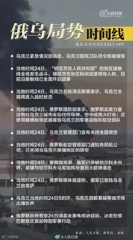 乌克兰总统泽连斯基表示,乌克兰全境将进入战时状态,乌克兰管理部门宣布关闭全境领空。目前,乌克兰武装部队空军的军事基础设施已瘫痪,武装部队的防空力量已被完全压制。