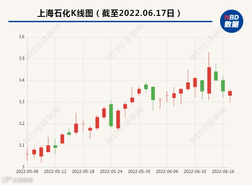 二级市场上,截至6月17日收盘,上海石化(SH600688)报3.35元/股,最新市值362.6亿元。