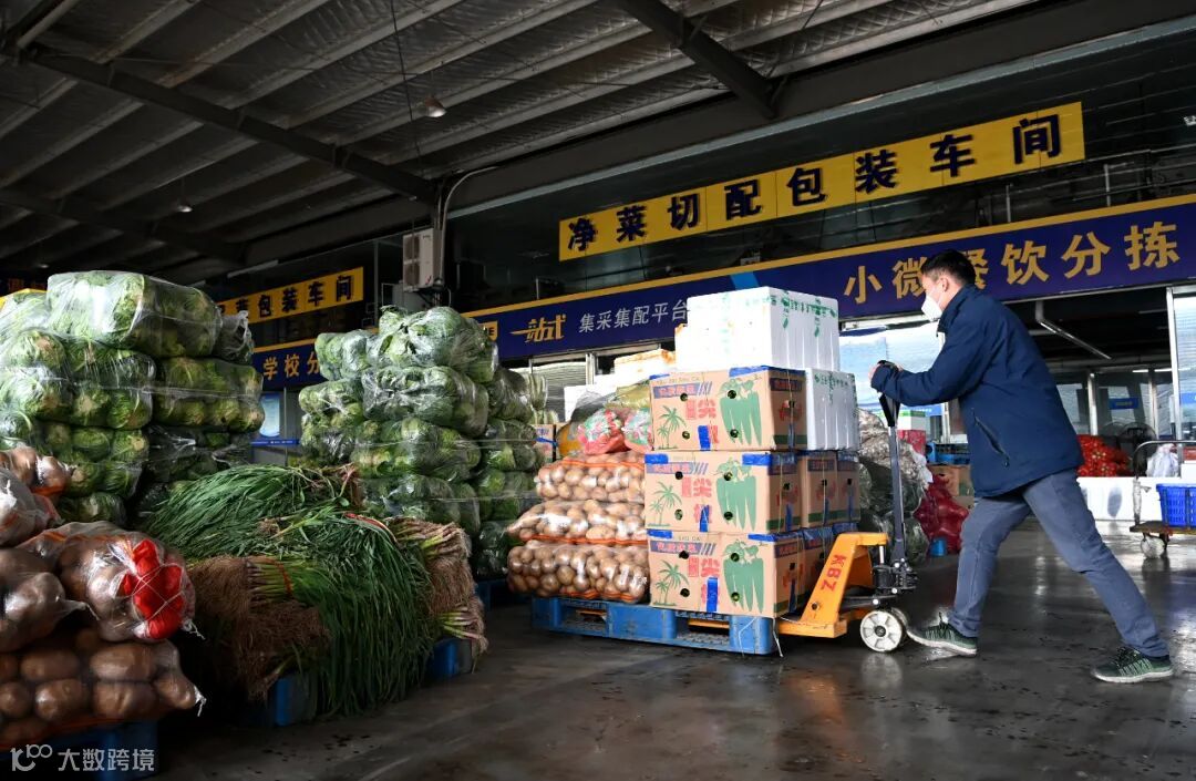 陕西某供应链管理股份有限公司。据了解,为确保供给安全,蔬菜进行分拣前会进行两次农残检测,工作人员实施24小时核酸检测、入场测温、佩戴口罩,工作场地1小时进行一次消杀。新华社记者 刘潇摄