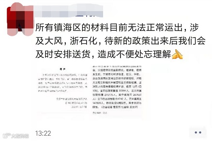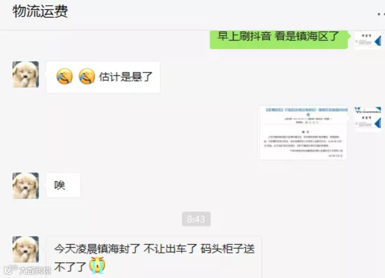 同时,也有物流公司表示,“镇海封掉之后不让出车,码头柜子也送不了了,本来在截单的订单也不能提柜装箱,现在都在等通知。”封区对当地物流的影响是显而易见的。