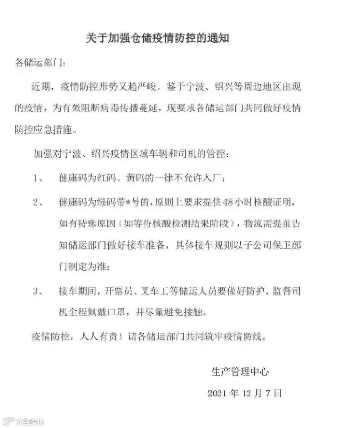 截止目前,此次宁波镇海突发疫情对工厂生产并没有产生严重影响,但发货确实是受到了限制,司机需要持有核酸检测证明,这对当前脆弱的供应链而言无疑是雪上加霜。