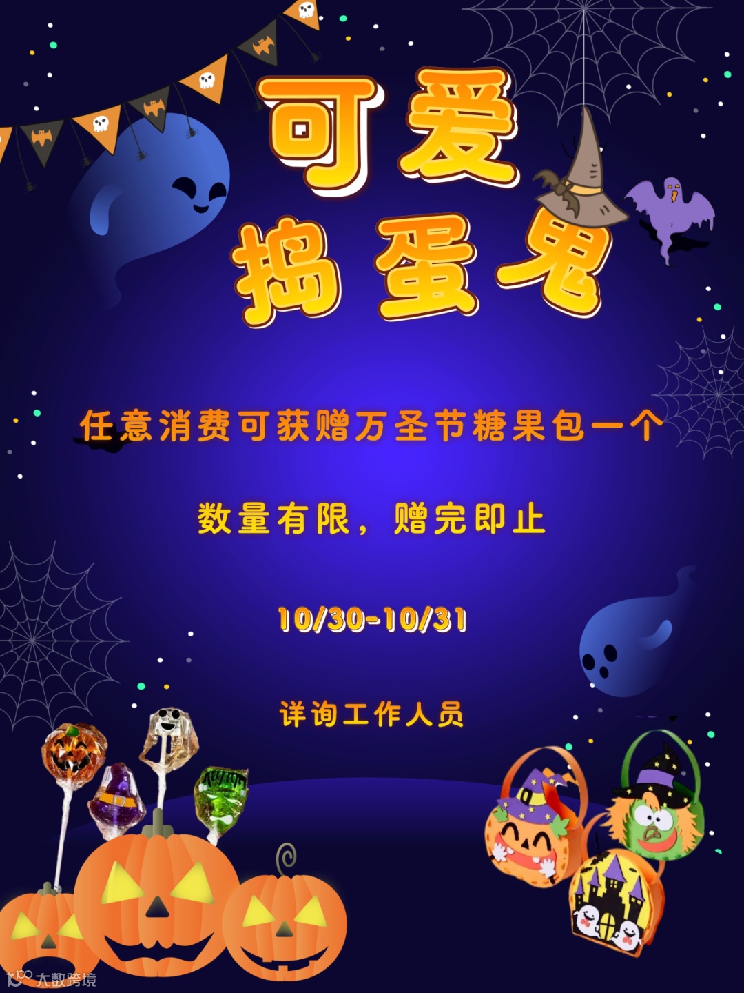 任意消费顾客可获赠万圣节讨糖包一个
