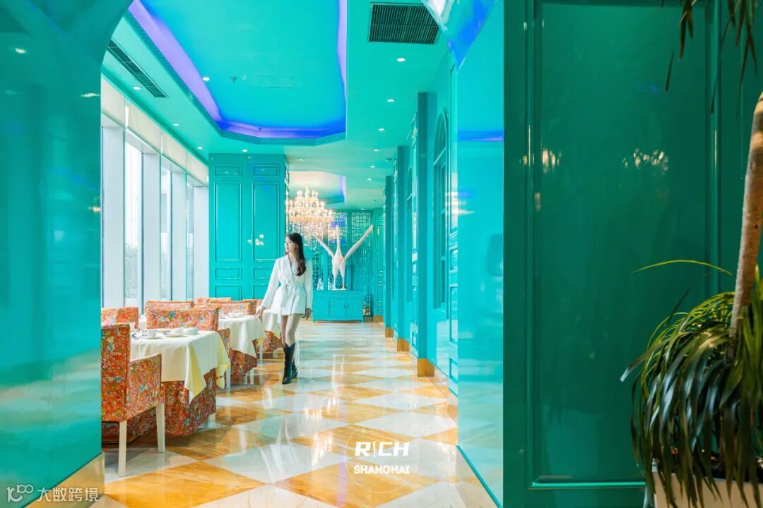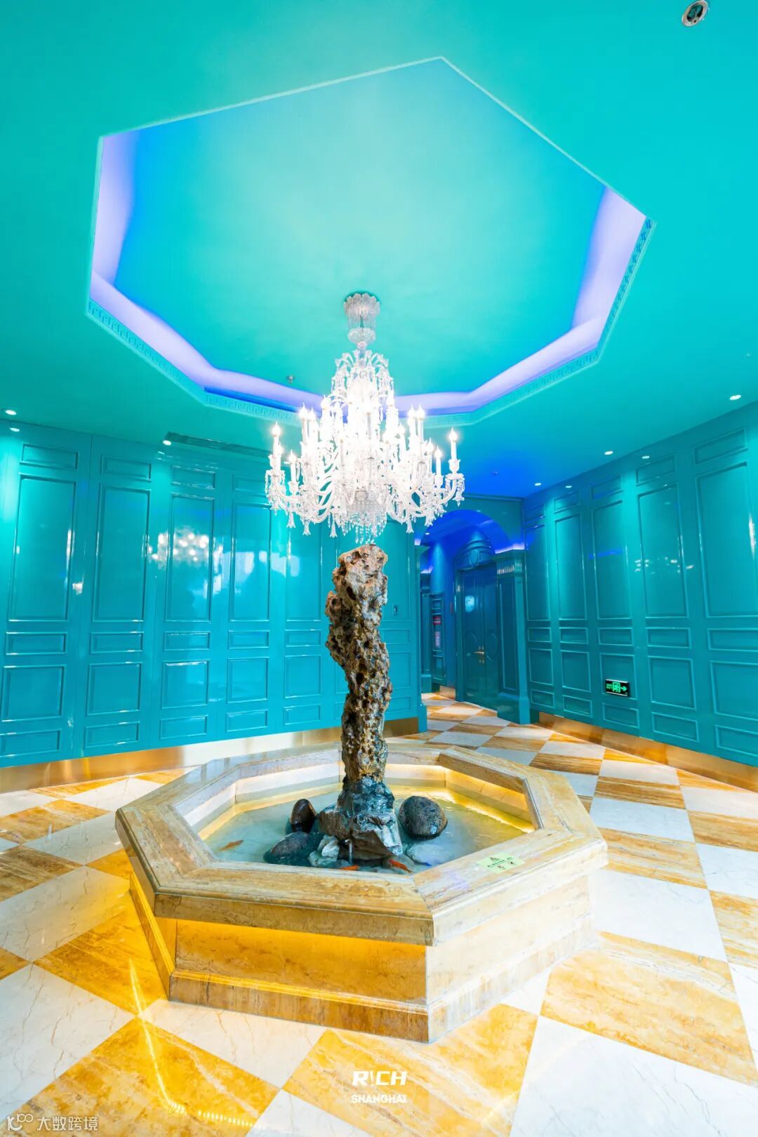 再往里走,仿佛“闯”进了一间高品质的艺术品殿堂,巨大的水晶吊灯从天花板垂下,每个细节都在闪烁着光芒。位于晶耀前滩的朱雀在这独特的马尔斯绿中构建出一派亚欧折衷主义融合景象,彰显海洋文明的沉稳与雅致。