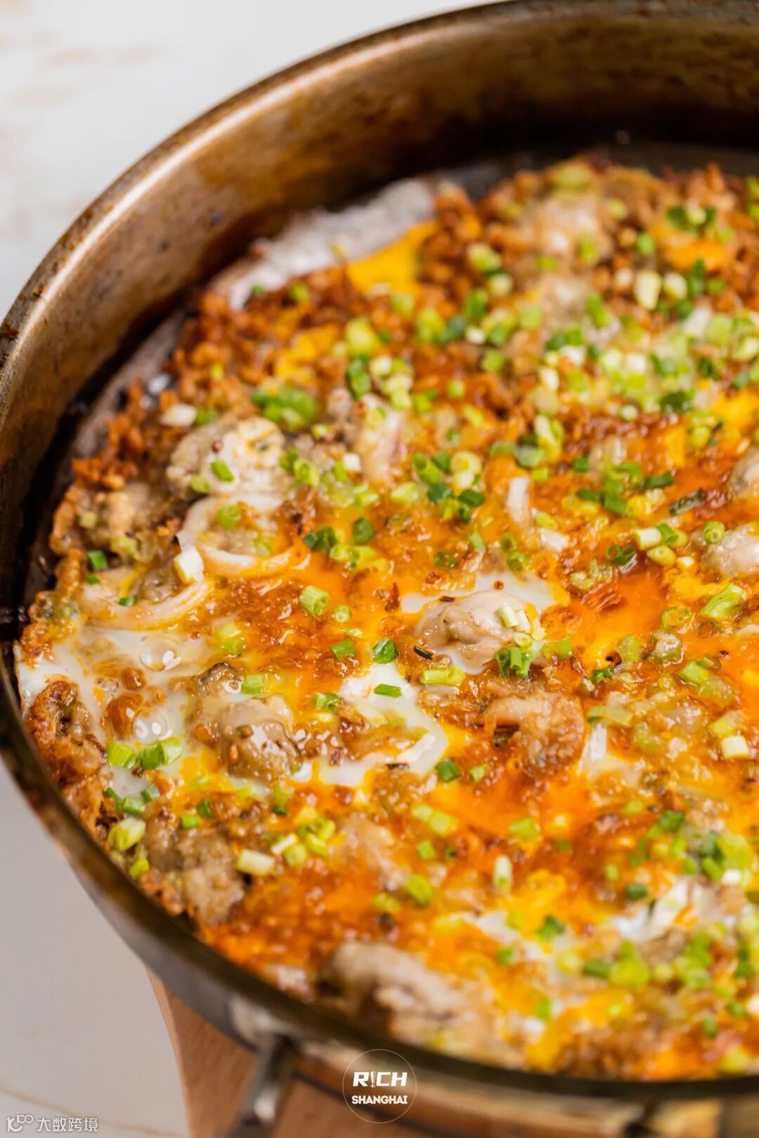 区别于普通啫啫煲的菜式之一,「惠食佳啫蚝仔烙」采用宽而平的铁盘烹制蚝烙,并往里融入了蚝仔、花甲、小八爪鱼等海鲜。