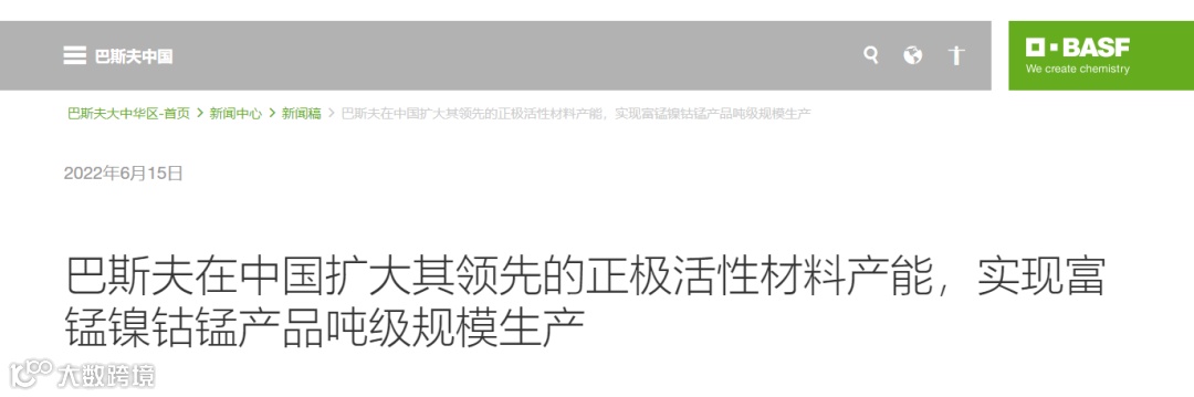 6月15日,巴斯夫在其官网上宣布由巴斯夫在中国控股的合资公司(巴斯夫持股:51%;杉杉股份持股:49%)——巴斯夫杉杉电池材料有限公司(以下简称巴斯夫杉杉)正在扩大其在湖南长沙和宁夏石嘴山基地的电池材料产能,以满足当地和全球快速增长的电动汽车(EV)市场需求。