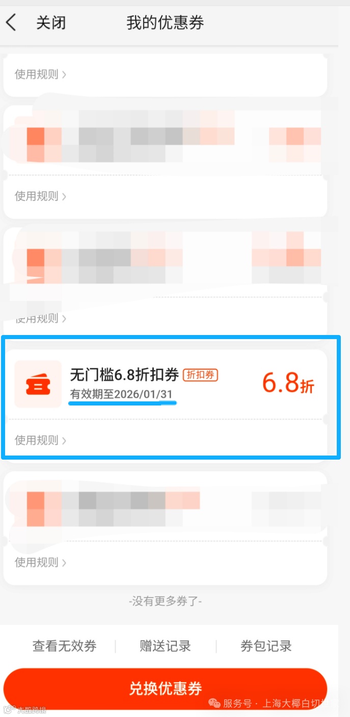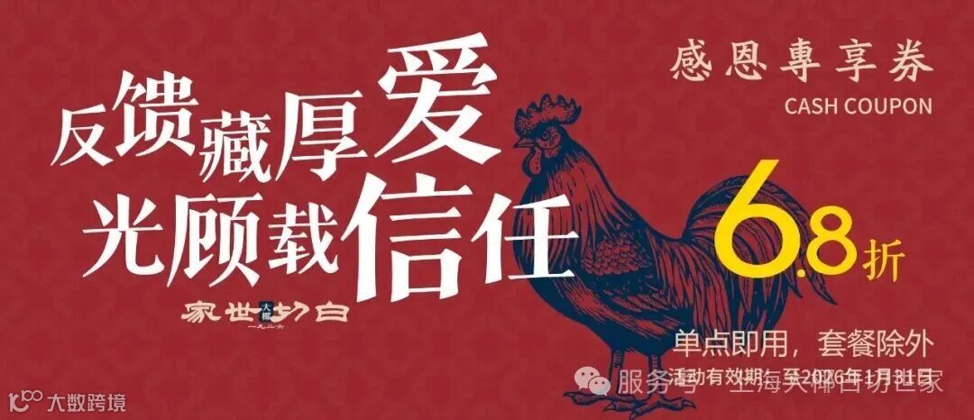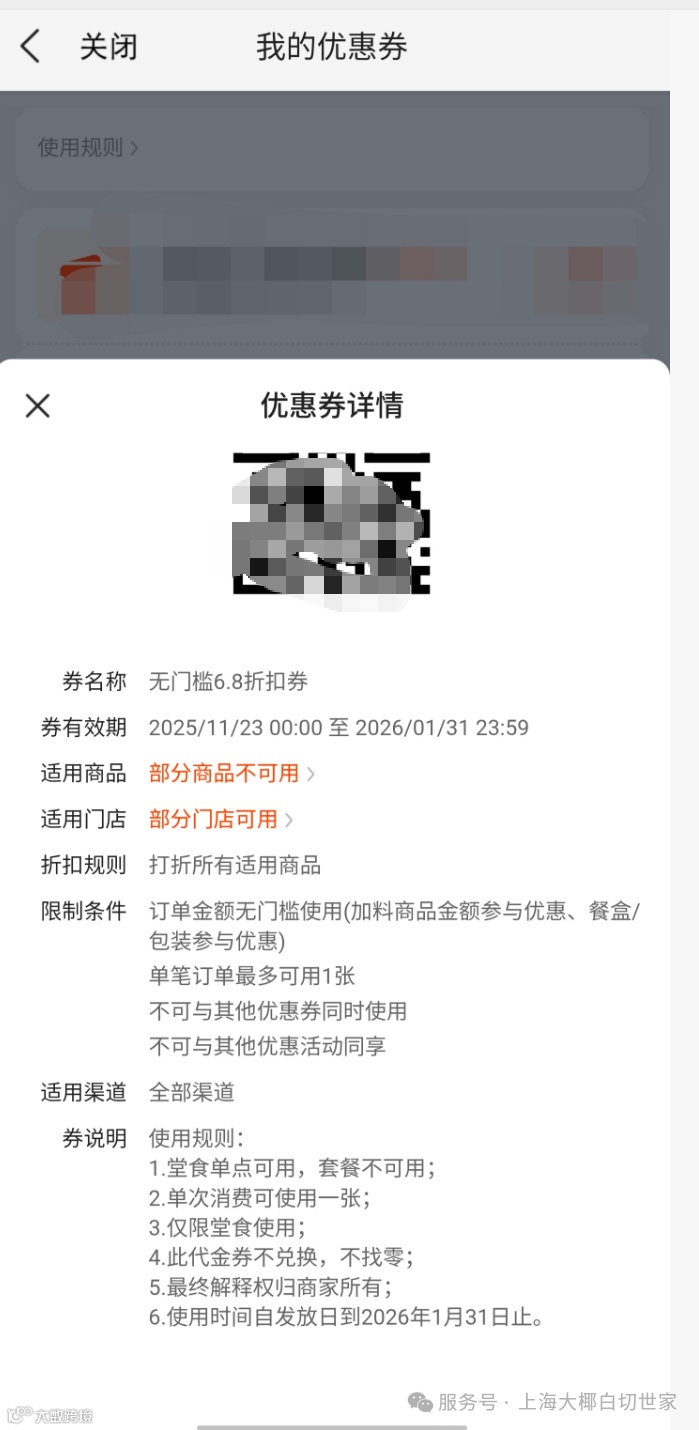 同时,为感恩曾点评,探店,收藏打卡过,或者消费过未入会的顾客,在2025年12月31日前加入本店会员,即可领取相应的68折的优惠券3张,优惠券使用时间自领券之日起至2026年1月31日。