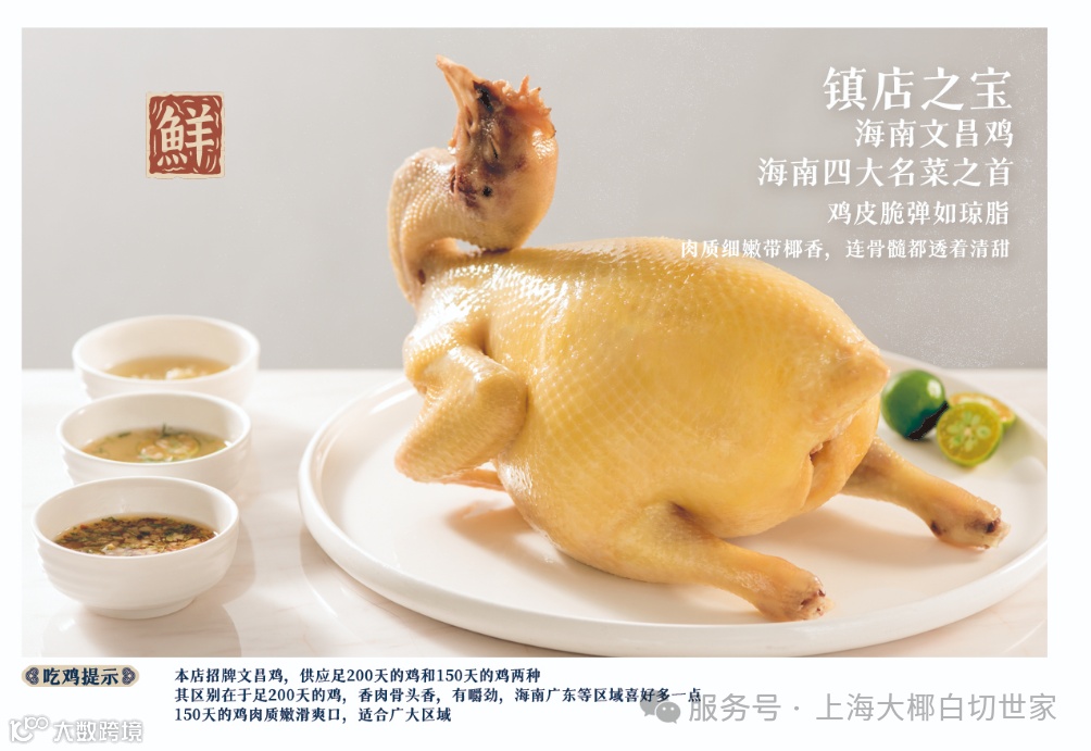 【招牌文昌鸡】堪称白切世家的镇店之宝。在海南,文昌鸡凌晨宰杀,天亮前送达各餐厅,当天售罄,绝不隔夜。广州各店更是将活鸡从海南运至广州屠宰场,同样可以实现“当日宰、当日上”。但在上海,受限于距离与活禽屠宰规范,这一标准难以直接复制。
