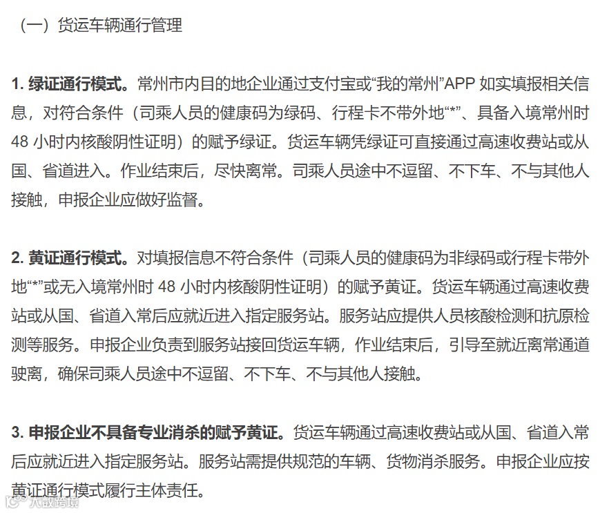 货运车辆入常前,应由常州市内目的地企业申请“龙城畅运”电子通行证,履行企业主体责任,实行闭环管理。