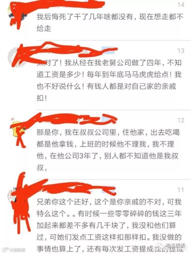 现在想来,这辈子最后悔的就是这段经历了,我以我的血泪告诉大家不要到亲戚公司去打工。其实像我这样遭遇的朋友有不少,大家可以看一下其他朋友的控诉: