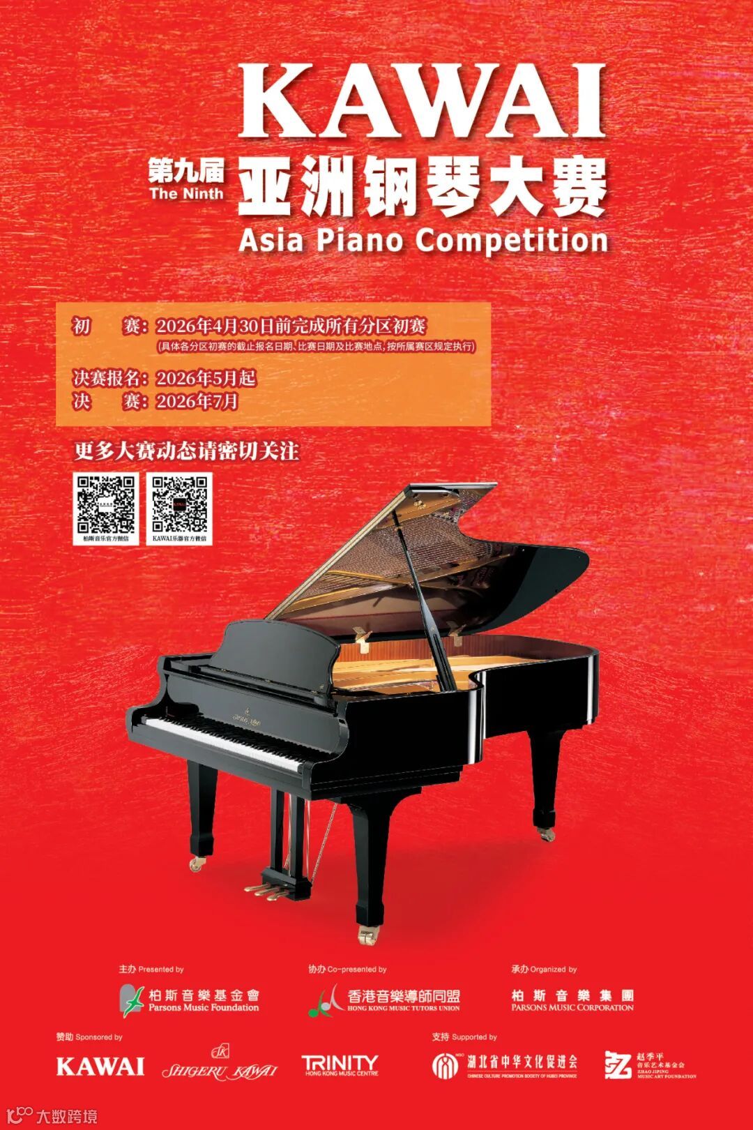 在“柏斯音乐”官方微信公众号,热门活动KAWAI钢琴大赛或“KAWAI乐器”官方微信公众号热门活动KAWAI钢琴大赛中,按照指引填写个人参赛信息,完成线上报名;
