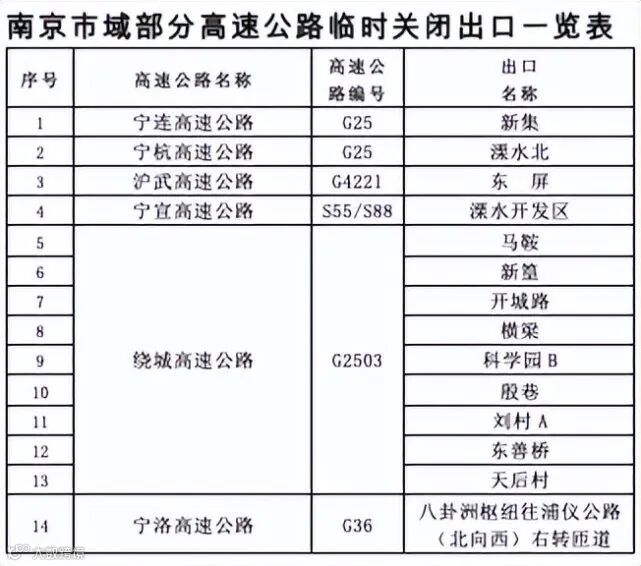 5、G2503 南京绕城高速,关闭马鞍、新篁、开城路、横梁、殷巷、东善桥、天后村等9个出口
