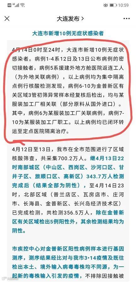 广州化工城最新消息据辽宁省大连市近日通报,4月14日和15日,该市共有12名无症状感染者与金普新区某服装加工厂相关联。16日,该市新增4例无症状感染者,其活动轨迹也与该服装厂所在地相关。