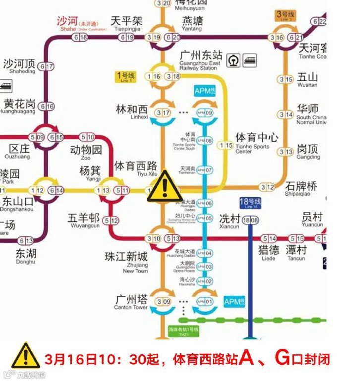 一、地铁方面,地铁体育西路站A口、G口采取封闭措施,其他出入口正常对外提供服务。