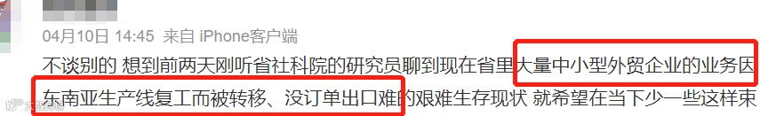 有网友感受颇深,表示大量外贸企业的订单被转移甚至没订单了……