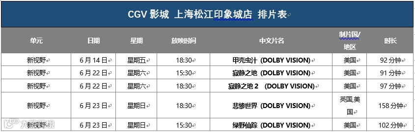 地址:松江区广富林路1788弄印象城4层CGV影城