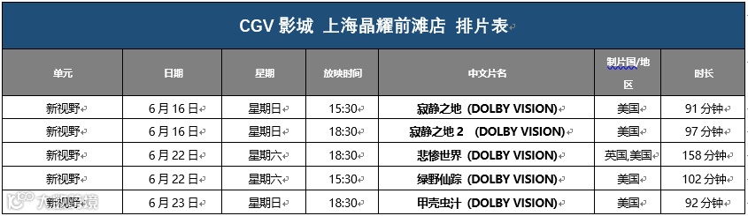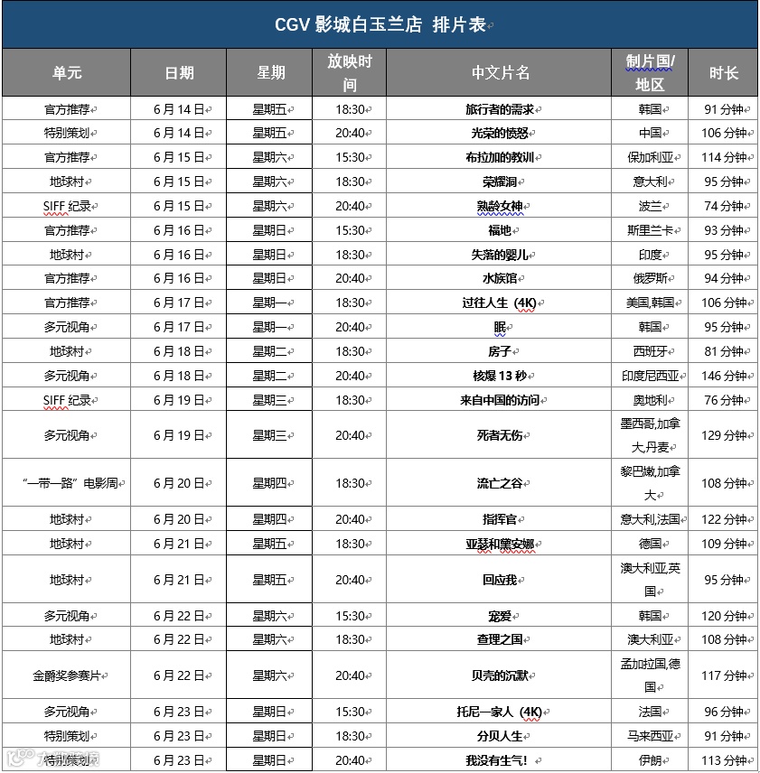 凡是在CGV影城购买上影节影票的小伙伴,6月14日-6月23日期间凭票根到以下展映影院,可现场兑换限量电影周边!【一票一份,周边随机,数量有限,先到先得】(排片表往下翻~)