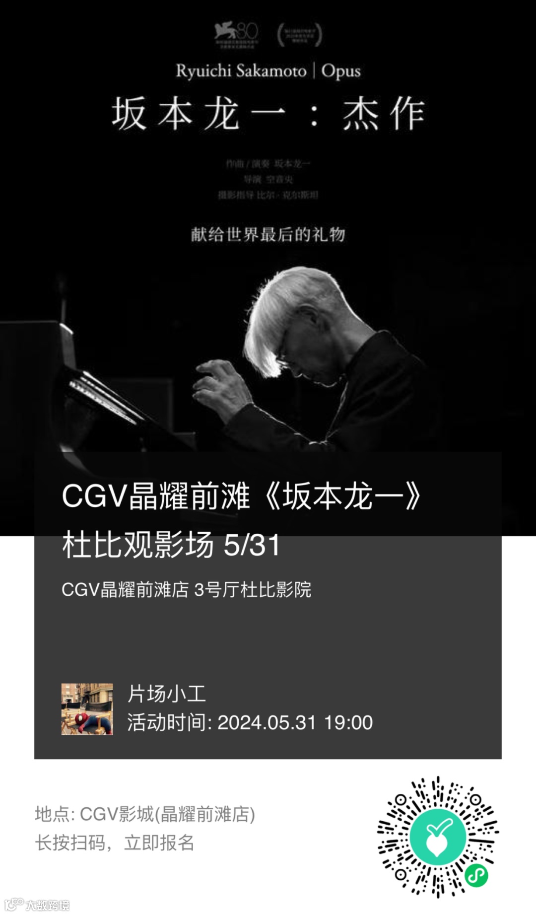 CGV晶耀前滩店《坂本龙一:杰作》杜比观影场 5/31