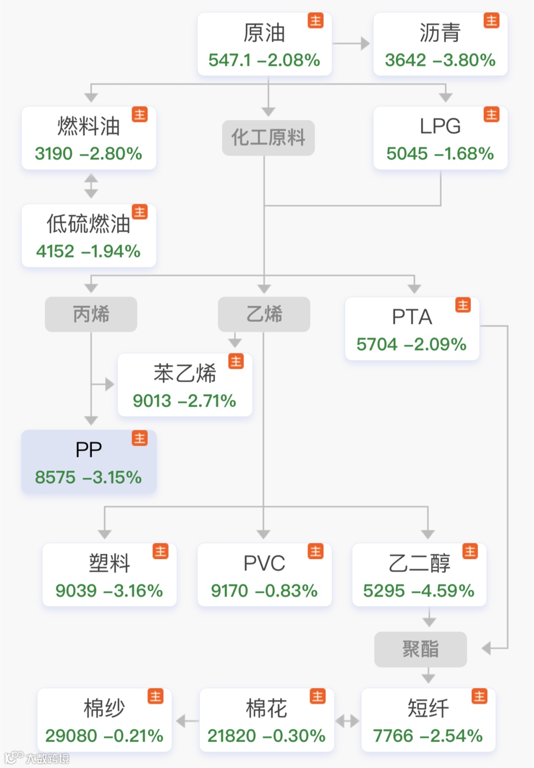 今日市场方面,原油价格受伊朗美国谈判释放积极信号的影响出现回撤,PP受此影响跟随回调,中间商库存累积,负反馈至上游企业,今日石化出厂多数下调,跌幅在150-250元/吨,现货方面随行就市,预计短期PP市场价格继续下跌为主。