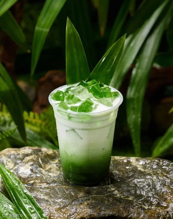 新鲜斑斓叶榨汁搭配清爽椰子汁