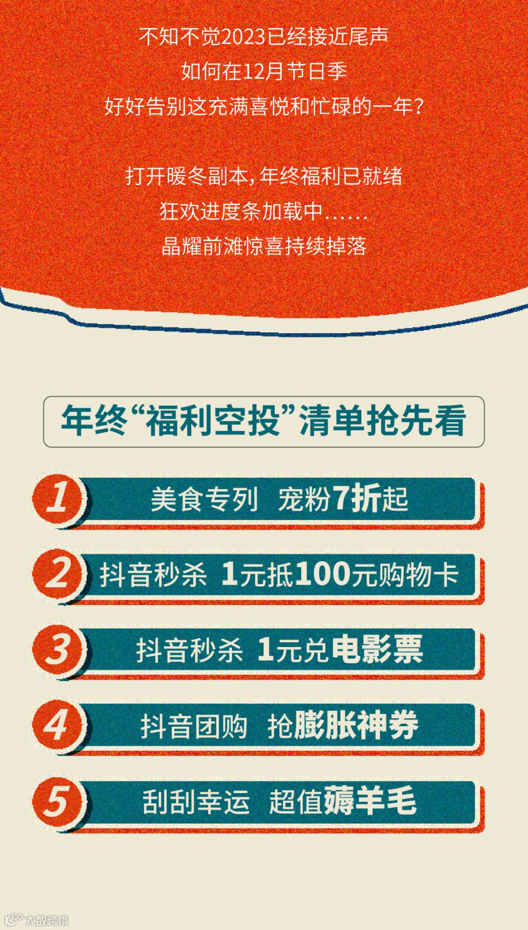抖音1元秒杀已就位,全场餐饮7折起,年终福利,无“促”不欢!