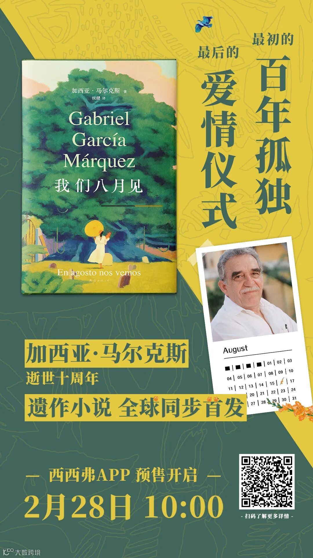 世界级文学大师加西亚·马尔克斯的遗作《我们八月见》将于3月6日全球同步上市!西西弗APP预售现已开启!