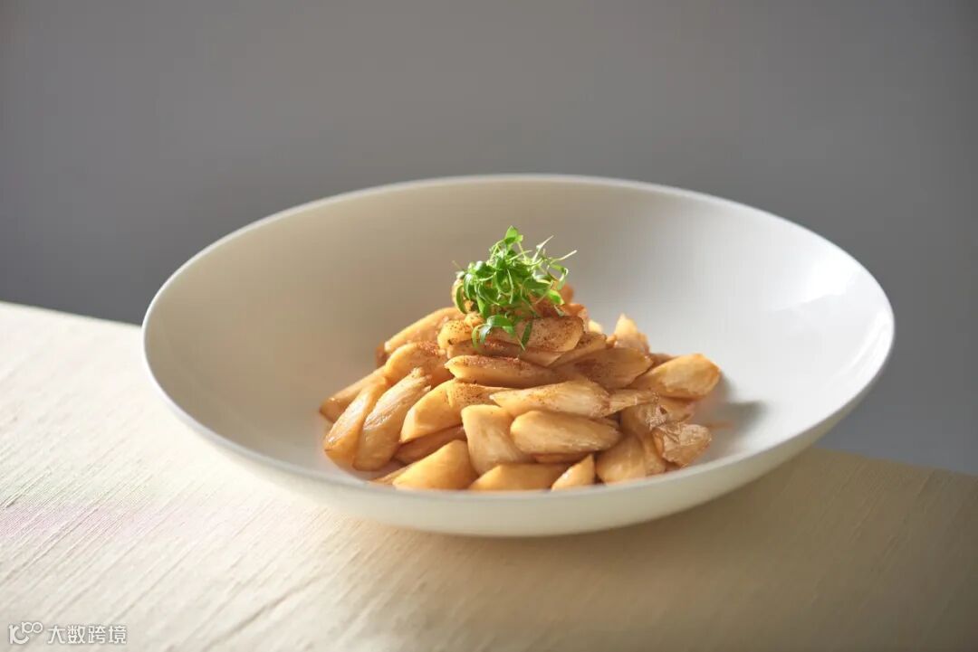 两者相结合新意满满,浓淡相宜。配上新鲜荔枝给整道菜提供清新解腻的作用。