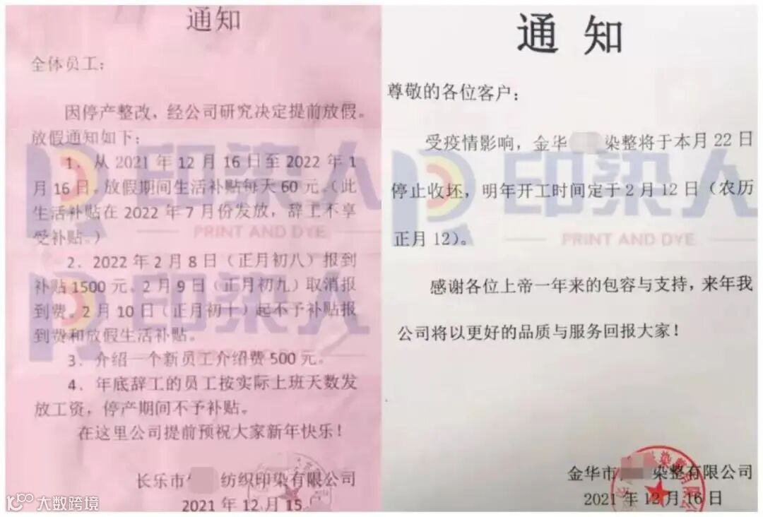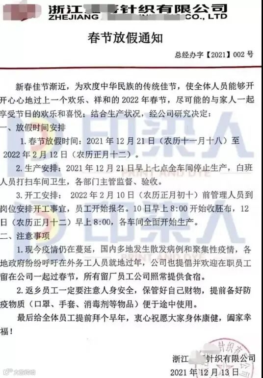 纺织市场则更为严峻,疫情反扑或让今年行情提前结束!不少的纺织及印染厂已经发布了春节放假通知!