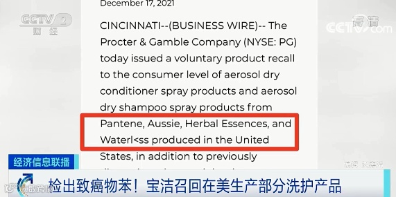 此外,上个月23日,因产品中检测出苯,宝洁公司宣布召回在美出售的部分止汗喷雾。
