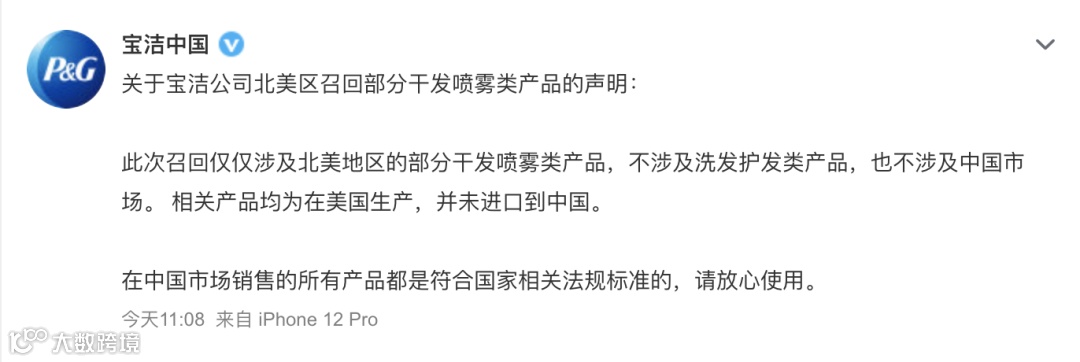 @宝洁中国 发布声明称