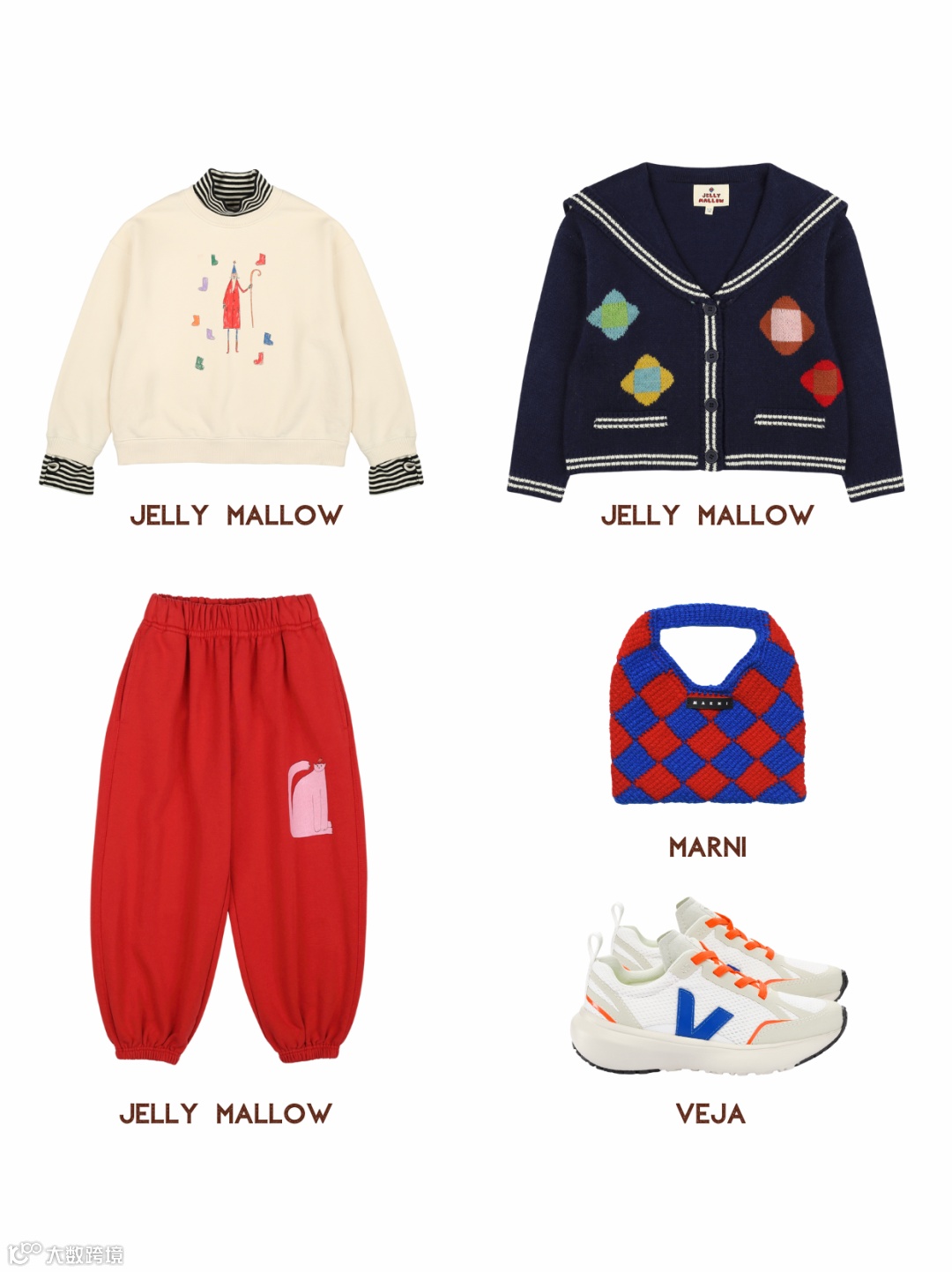 JellyMallow AW23 一如既往以缤纷多彩的色调,大胆童趣的图案俘获孩子们的心 ,注重孩子生活中的每个细节的仪式感,来表达孩子的俏皮可爱,孩子的世界,就要色彩斑斓元气满满。
