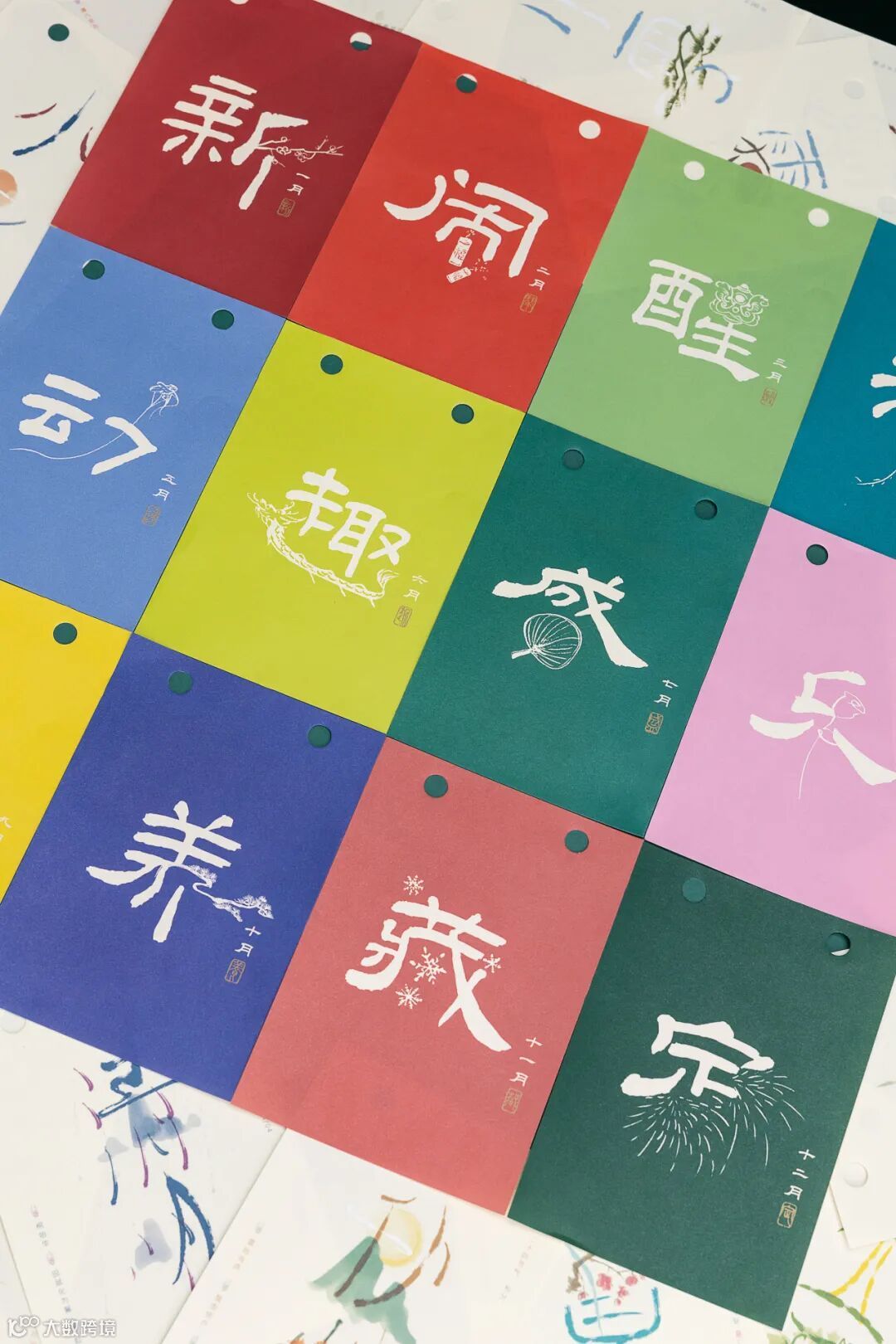 12个月首页选用贴合当月氛围的传统色和关键词,12个汉字的设计又融合了当月大家熟知的自然特点或习俗活动,提醒我们生活也该“依时而作”。