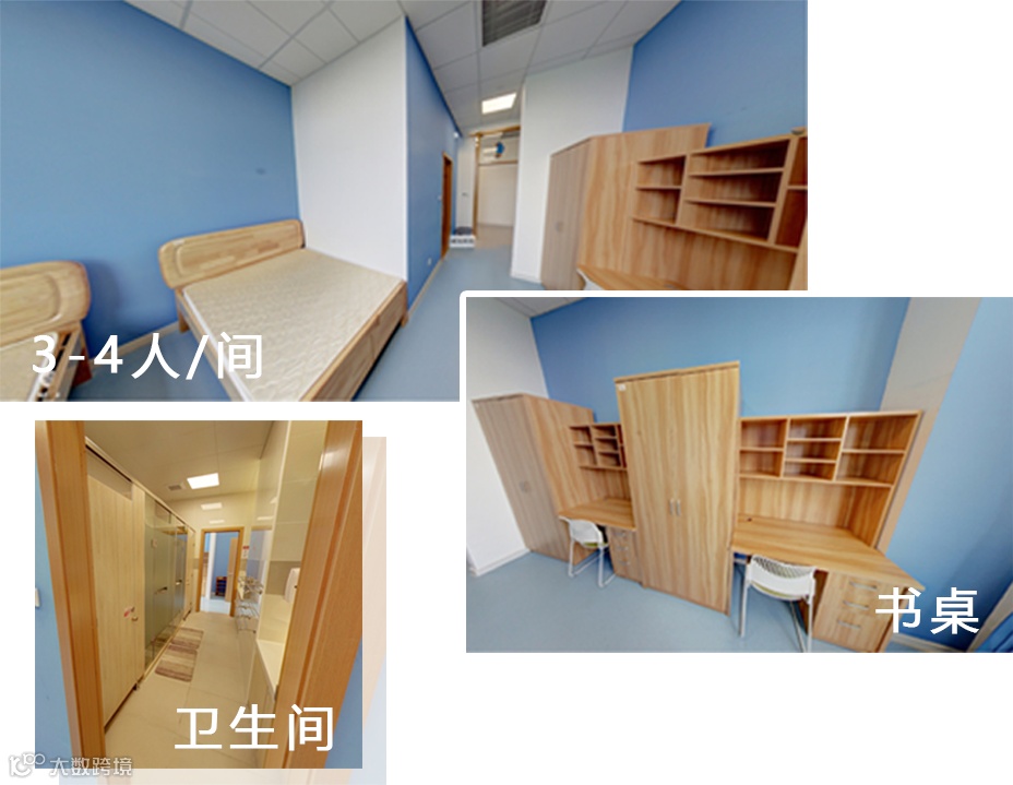 学生宿舍组成:学生房间(三人间或四人间),设单人床、课桌、空调、卫生间、浴室等。