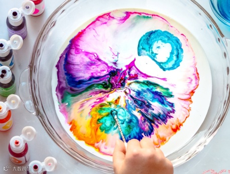 将用牛奶和食用色素,制作出光彩夺目的星际烟花;