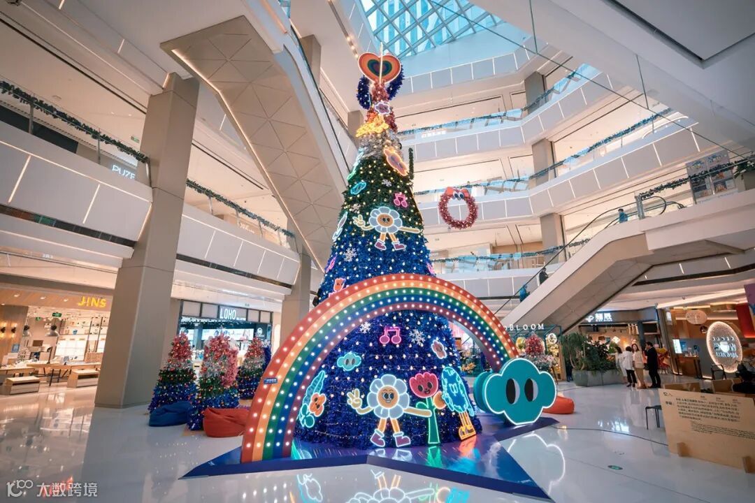 齐聚10米高的彩虹圣诞树下