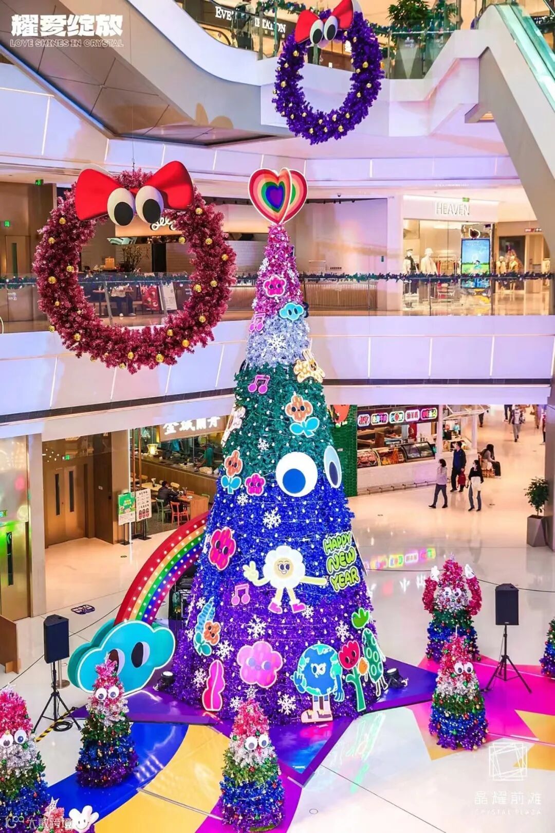 坐拥33W粉丝的儿童艺术家用6岁小女孩童真且质朴的绘画语言,点亮10米高的彩虹圣诞树。用童真与爱意抵御世界的寒意,共同谱写当季主题——耀爱绽放LOVE SHINES IN CRYSTAL。