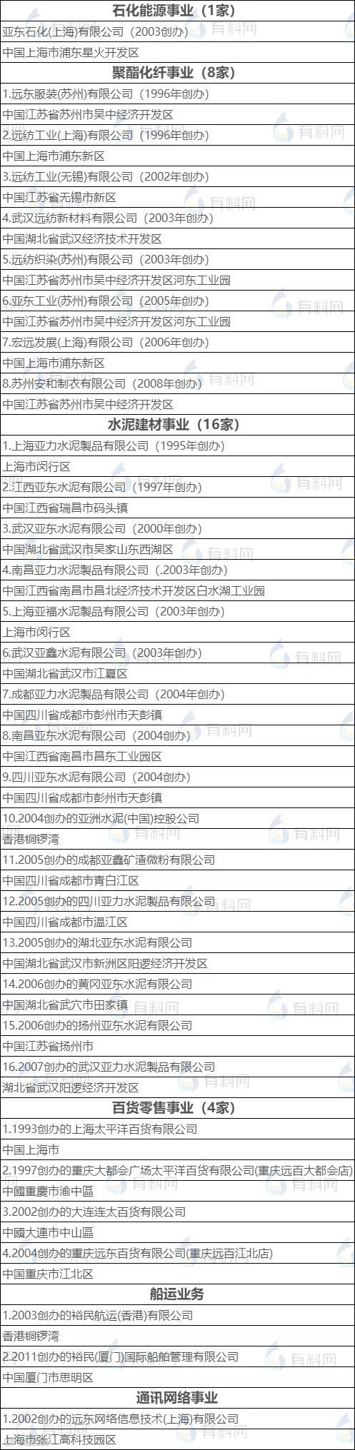 据公开资料,台湾远东集团由纺织业起步,历经半个世纪以来持续的投资扩展,目前经营领域已涵盖了石化能源、聚酯化纤、水泥建材、百货零售、金融服务、海陆运输、通讯网路、营造建筑、观光旅馆、开办大学、社会公益等10多个行业,共有9家上市公司,股东人数51万人,分布全球10余个国家130多家工厂。