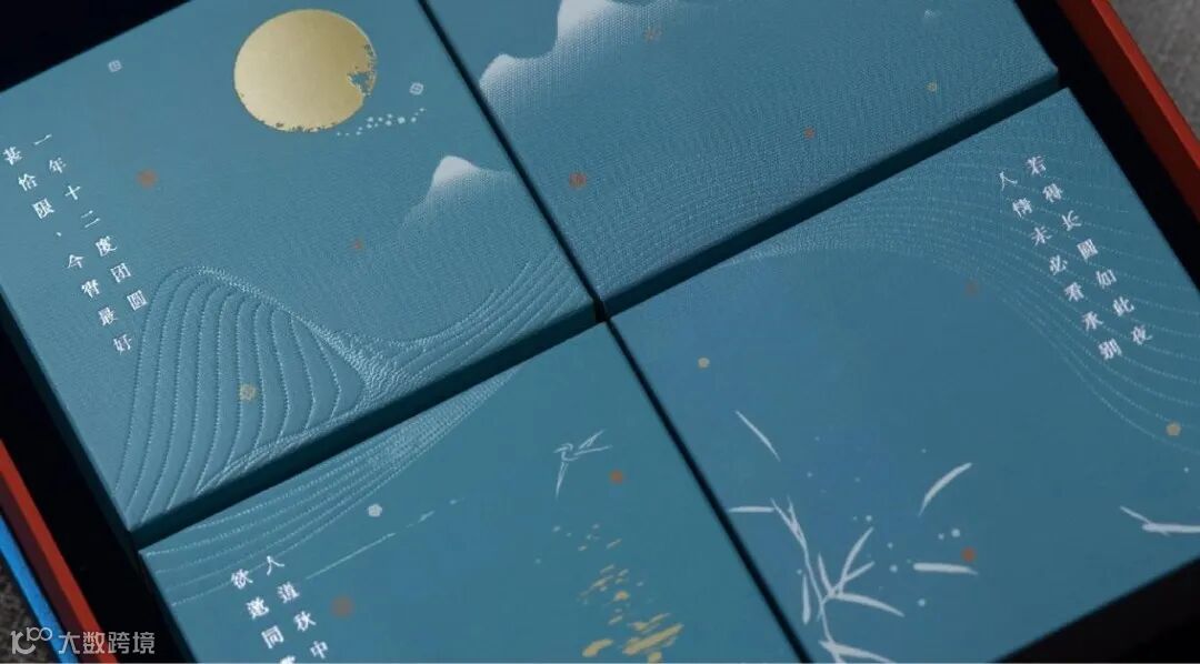 四枚清新淡雅的月饼自中华传统诗词中取出经典意象「月、山、鸟、水」,搭配中国色、工笔风的原创饼面设计,为赏味之人呈现独属于东方美学的极致浪漫。