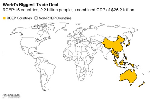 “世界最大的贸易协定将于明年1月生效,美国没有参与”,美国CNBC网站3日称,RCEP覆盖了全球22 亿人口和 26.2 万亿美元的产出市场。该伙伴关系将创建一个涵盖全球约30%人口和全球经济的贸易集团,这比美国-墨西哥-加拿大协定 (USMCA)和欧盟等其他区域贸易集团更大。报道还酸溜溜地称,分析人士表示,RCEP的经济效益不大,需要数年时间才能实现。“尽管如此,在美国在亚太地区的经济影响力减弱之际,该协定仍被广泛视为中国的地缘政治胜利。”