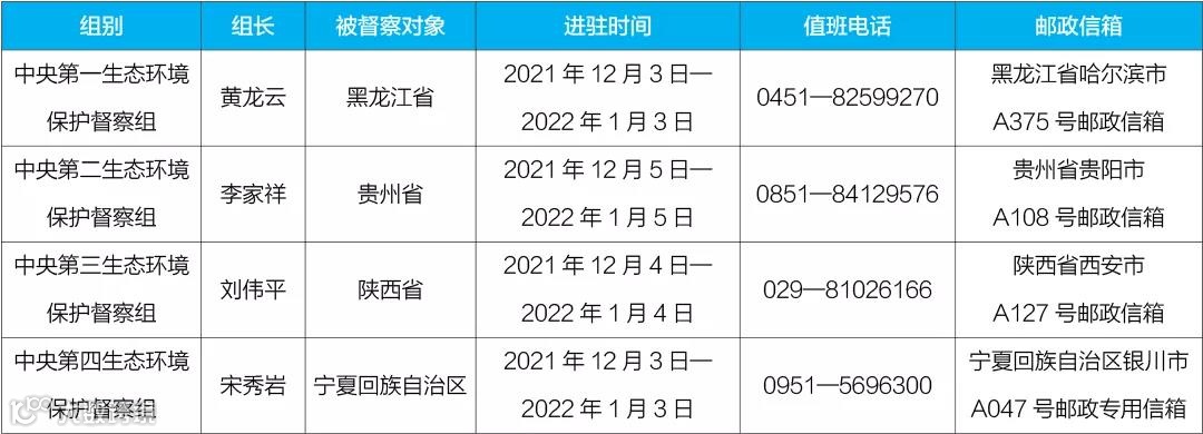 记者6日从生态环境部获悉,第二轮第五批4个中央生态环境保护督察组已经全部进驻,将对黑龙江、贵州、陕西、宁夏4个省(区)开展督察工作。