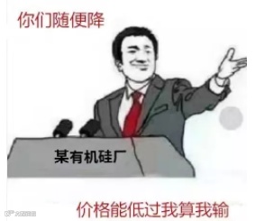 有机硅市场在大厂的神操作下,这几天跌宕起伏,比好莱坞大片还刺激。继各大主流单体厂报价明朗后,整车价基本与山东单体厂持平,这对山东单体厂出货去库存或不利,同时华东地区大型混炼胶厂也大幅让利竞价出货,打击中下游备货情绪,28日山东个别厂家DMC再次下调5000,对外报价调至45000元/吨,而421#金属硅价格保持在59500-66500元/吨,业内人士称DMC报45000元/吨已接近成本价,其它主流单体厂在报价后,接单情况不太理想,28日又明稳暗降,中下游厂家损失惨重,刚补的货一天不到就贬值了,客户也趁势压价。