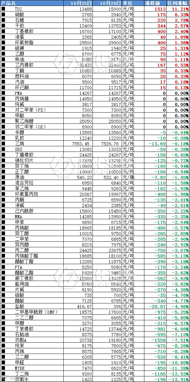 *化工大宗周涨跌幅榜