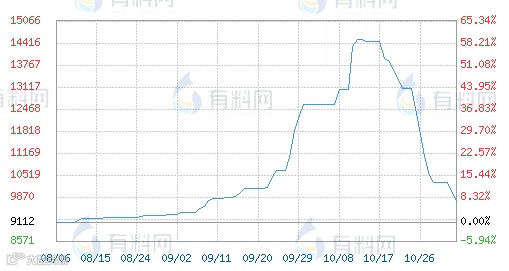 然而,步入10月末,随着国家对煤炭市场的干预持续,煤化产业成本得以控制,加之此前市场预期减弱,价格大幅回调,基本跌至中秋节前价位,价格普遍在9000-10000之间,截止11月4日,PVC厂商报价继续走跌!