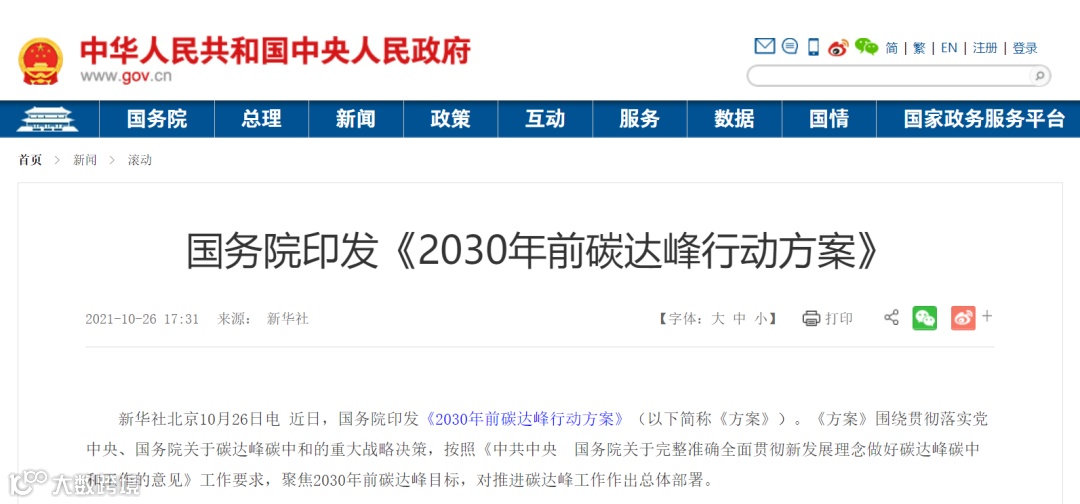 近日,国务院印发了《2030年前碳达峰行动方案》,《方案》提出了非化石能源消费比重、能源利用效率提升、二氧化碳排放强度降低等主要目标。到2030年,当年新增新能源、清洁能源动力的交通工具比例达到40%左右,单位国内生产总值二氧化碳排放比2005年下降65%以上,非化石能源消费比重达到25%左右,到2060年,非化石能源消费比重达到80%以上,碳中和目标顺利实现。