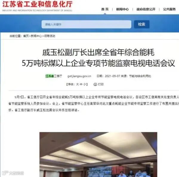 值得关注的是,采取能耗“双控”措施的并非泰州一地,整个江苏如今都在紧急行动中。