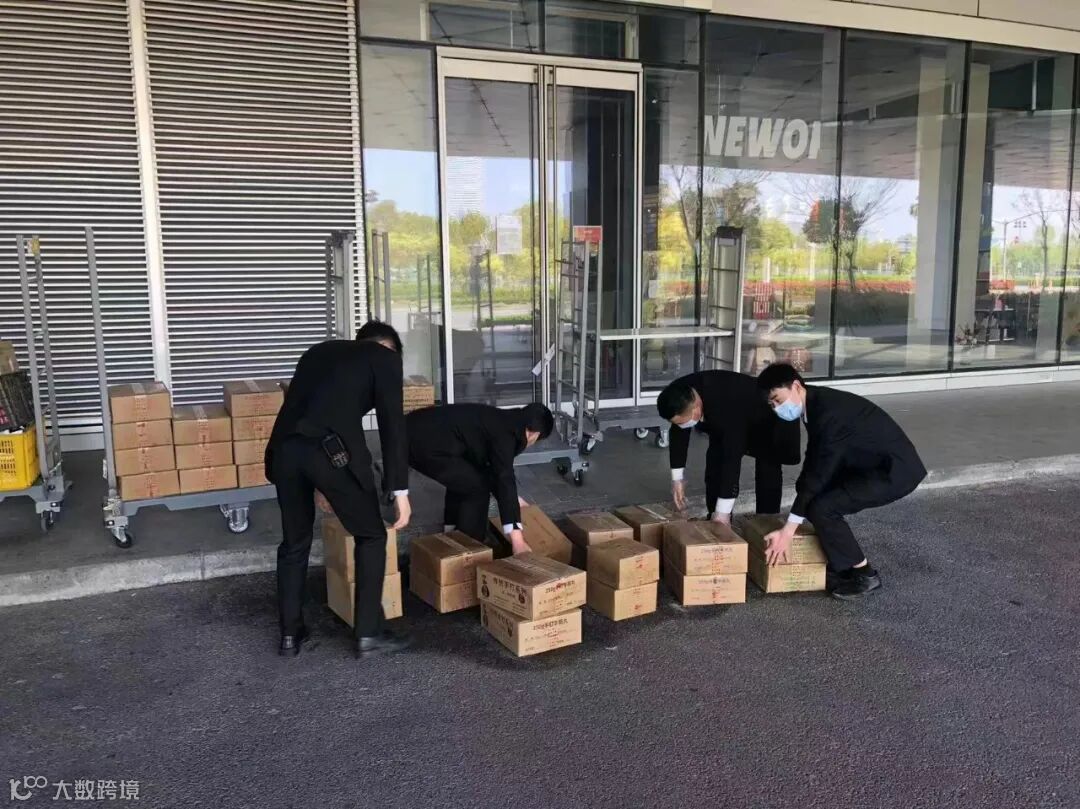 疫情防控期间,B1层的APIO超市作为保供单位需要继续营业。梁雨安排保安队员配合超市进行外送物品的周转。除了对送货车辆进行严格消杀,他们还承担起了将超市打包好的货品送到商场门口,将沉甸甸的物资交到配送员的手中。