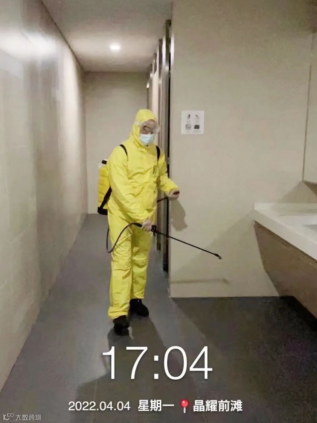 3月27日浦东封控的消息传来后,刘琼就主动请缨,放弃回家,带领20名保洁员工继续驻守商场。除了日常的清洁服务外,这一次,她们还面临着一个艰巨的工作,执行商场的特殊消杀任务。