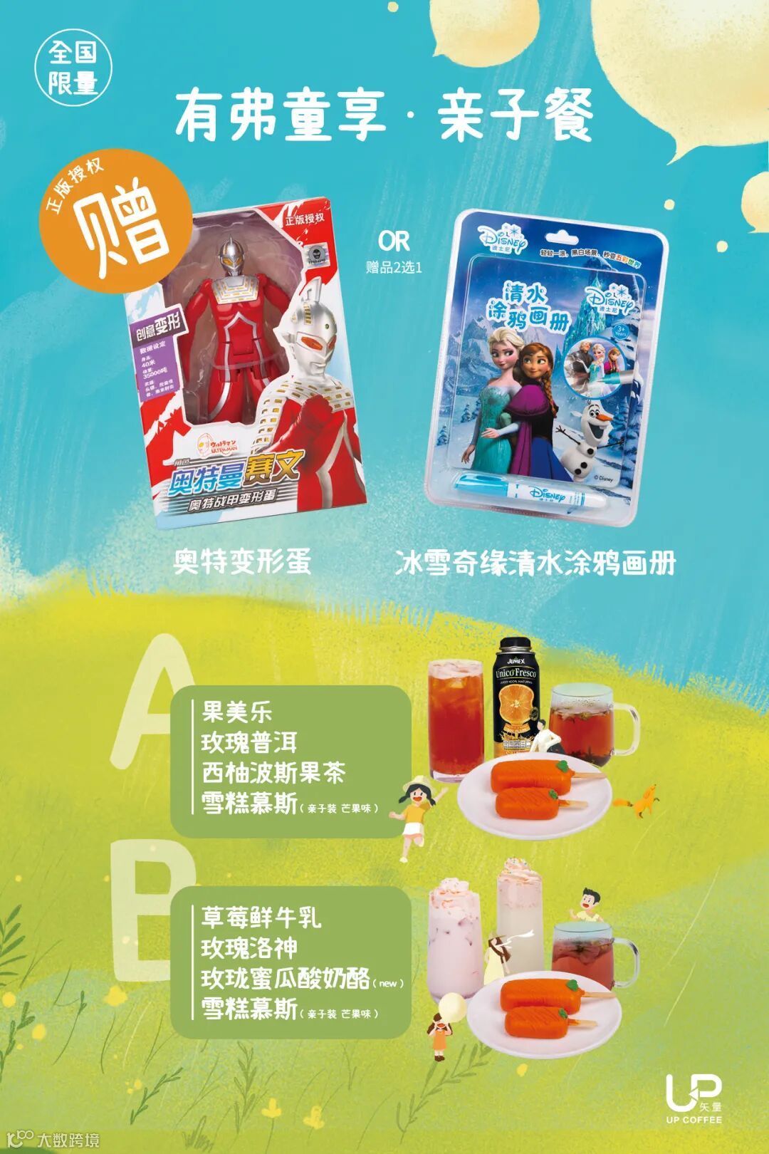 5月29日至6月6日,矢量咖啡为大家带来限量套餐【有弗童享·亲子餐】AB款,购买即赠奥特变形蛋/冰雪奇缘清水涂鸦画册(数量有限,先到先得)。